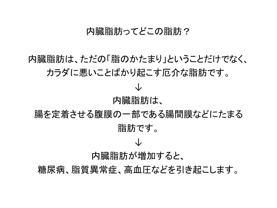 内臓脂肪は、ただの「脂のかたまり」ということだけでなく、カラダに悪いことばかり起こす厄介な脂肪です。