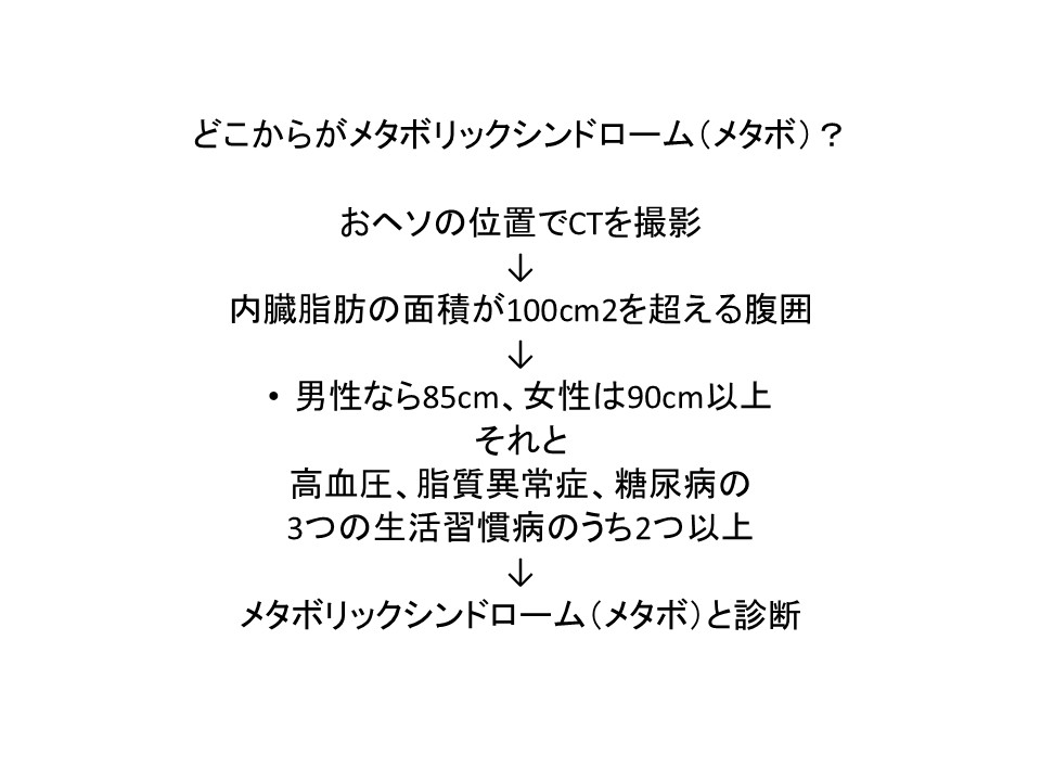 内臓脂肪が増加すると、糖尿病、脂質異常症、高血圧などを引き起こします。