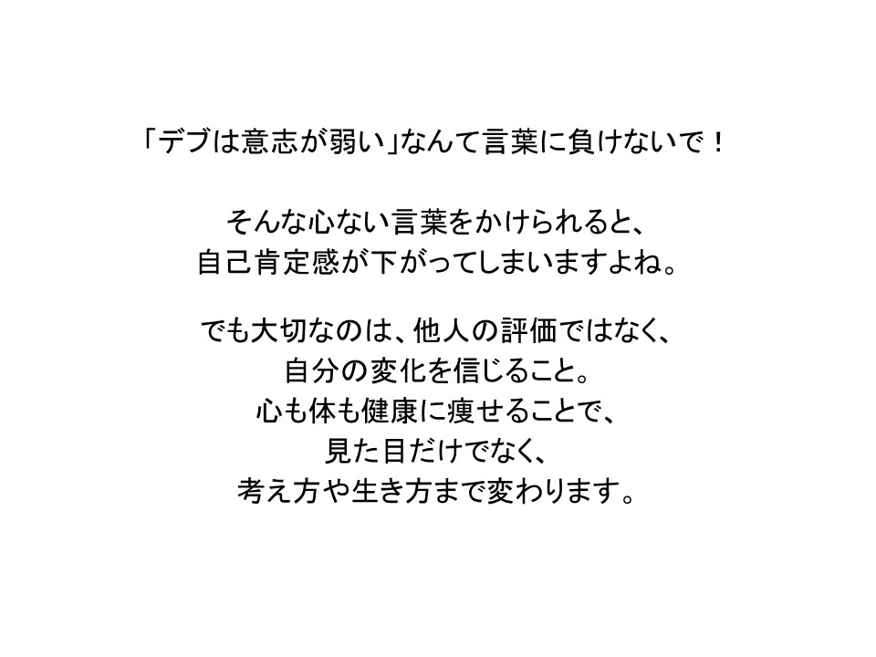 心も体も健康に痩せることで、見た目だけでなく、考え方や生き方まで変わります。