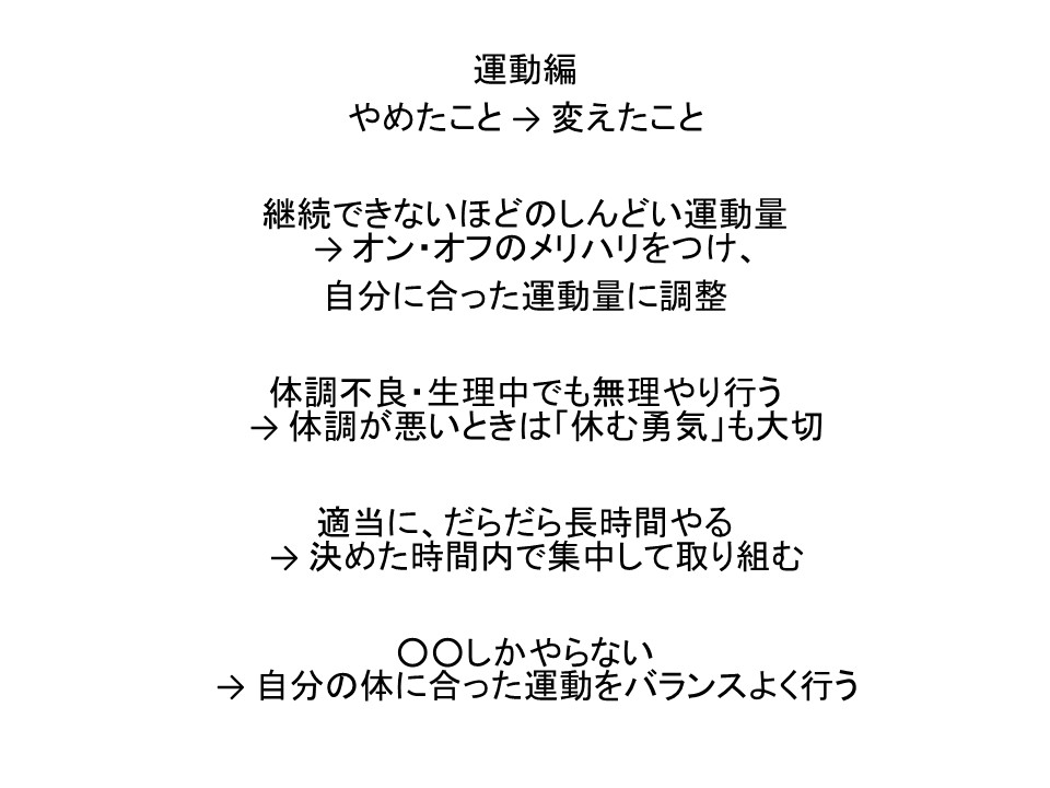 → オン・オフのメリハリをつけ、自分に合った運動量に調整
