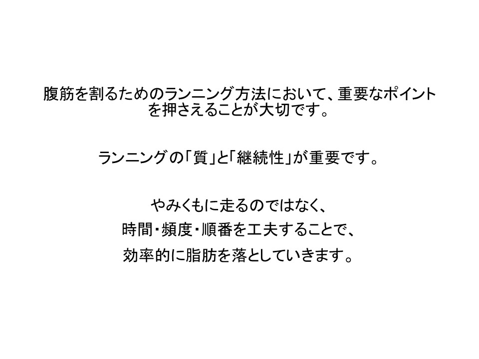 今回は、そのランニングで本当に大丈夫?腹筋を割るためのランニング方法、です。