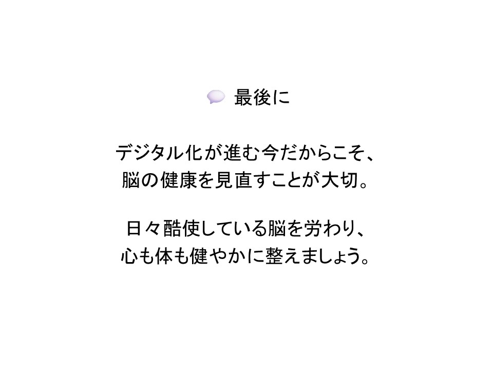 デジタル化が進む今だからこそ、脳の健康を見直すことが大切。