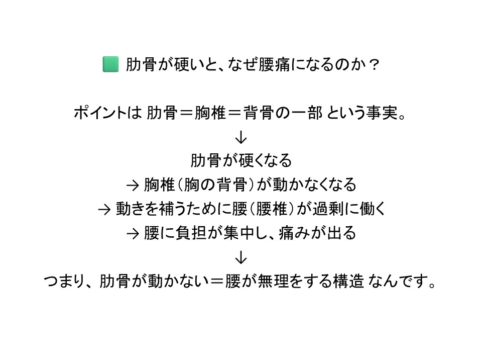🟩 肋骨が硬いと、なぜ腰痛になるのか?