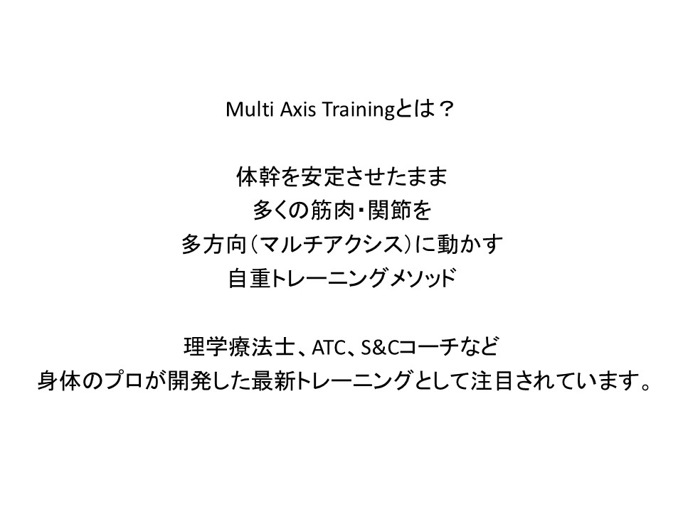 最先端の「Multi Axis Training(マルチ・アクシス・トレーニング)」